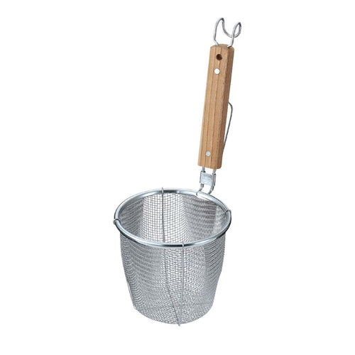 Noodle Strainer/Blanching Basket Flat Bottom w/ Wooden Handle
