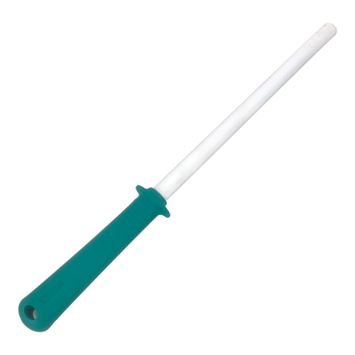 Keep your knives sharp and ready to use this Kyo-cera 10" ceramic knife sharpener. Lightweight and easy-to-use steel features a highly efficient ribbed surface for re-sharpening and a smooth surface for honing. Kyocera’s ceramic sharpening rods are made of advanced ceramic, a material close in hardness to diamond.When your steel knife or cutting tool is dull, use the ribbed side...